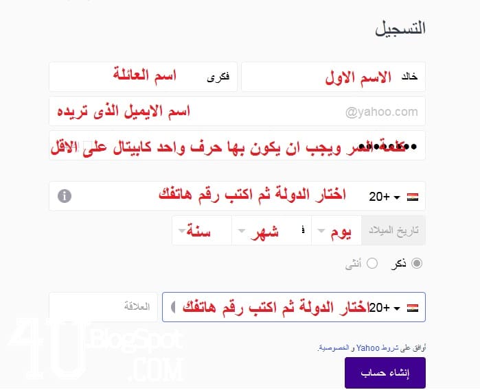 2- اسم الحساب الخاص بك على الياهو وسوف تختاره بنفسك وليس بها اى مشاكل